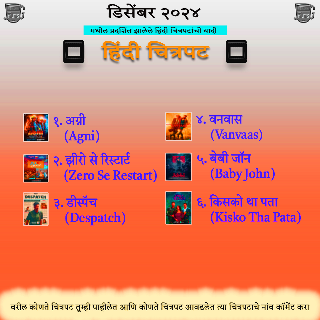 डिसेंबर 2024 मध्ये रिलीझ झालेल्या हिंदी चित्रपटांची यादी आणि चित्रपटांची समीक्षा | List of Hindi Movies released in December 2024 and Movie Reviews
